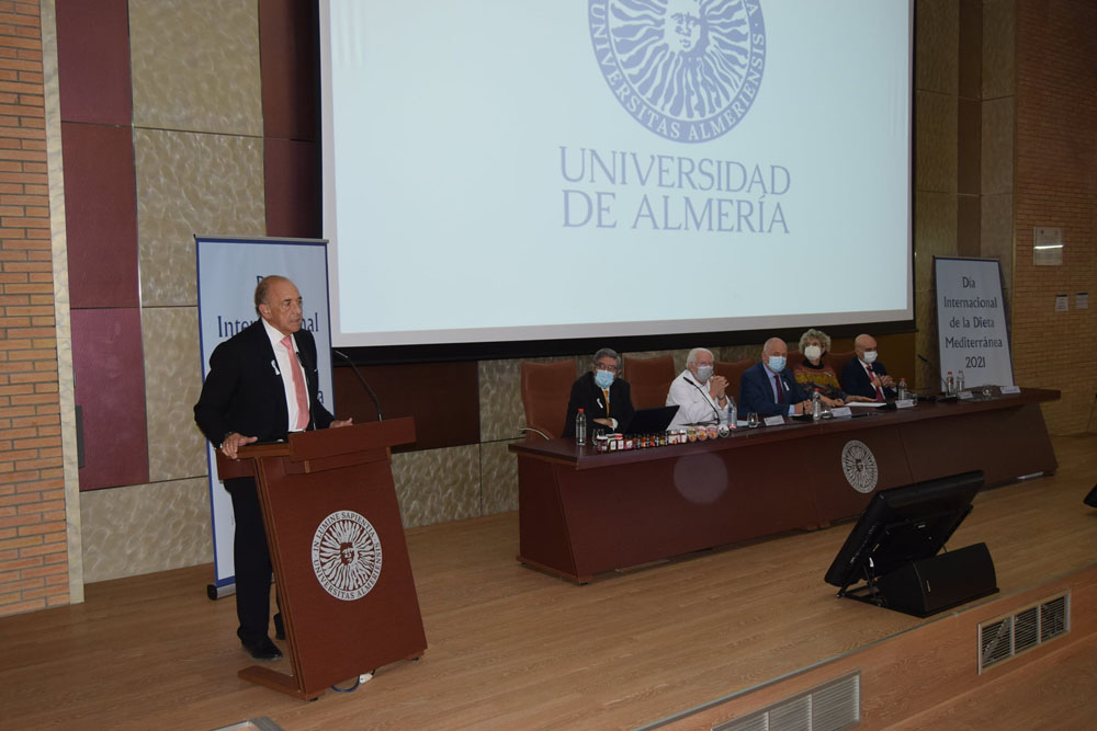 El pasado 10 de noviembre, se celebró en Almería el Día Internacional de la Dieta Mediterránea, organizado por la Real Academia de Medicina y Cirugía de Andalucía Oriental, Ceuta y Melilla en su Aula de Dieta Mediterránea y Vida Saludable de la Fundación RAMAO, la Universidad de Almería y la Facultad de Ciencias de la Salud de Almería. La inauguración del acto contó con la participación del Excmo. Sr. Rector de la Universidad de Almería, D. Carmelo Rodríguez, la delegada de la Junta de Andalucía en Almería, Dª Mª Isabel Sánchez Torregrosa, junto con el Excmo. Sr. Presidente de la Real Academia de Medicina y Cirugía de Andalucía Oriental, Ceuta y Melilla, D. Armando Zuluaga Gómez. En el transcurso de la Jornada se ha realizado una puesta en común sobre los beneficios de la Dieta Mediterránea a través de una mesa redonda en la que han intervenido distintas personalidades tanto científicas, investigadoras como del mundo empresarial, el acto concluyó con un coloquio final.